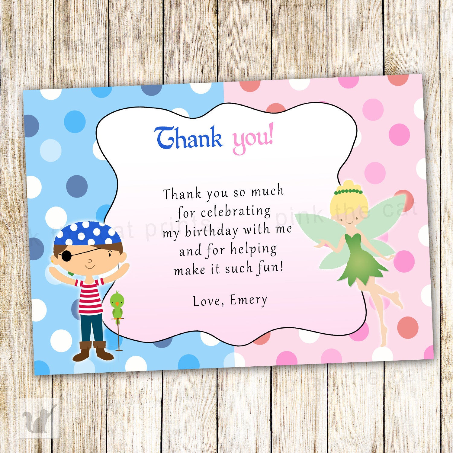 Pirate Fairy Thank You Card Note Kids Birthday Party – Pink the Cat